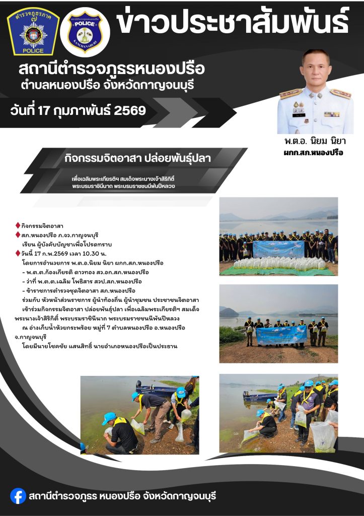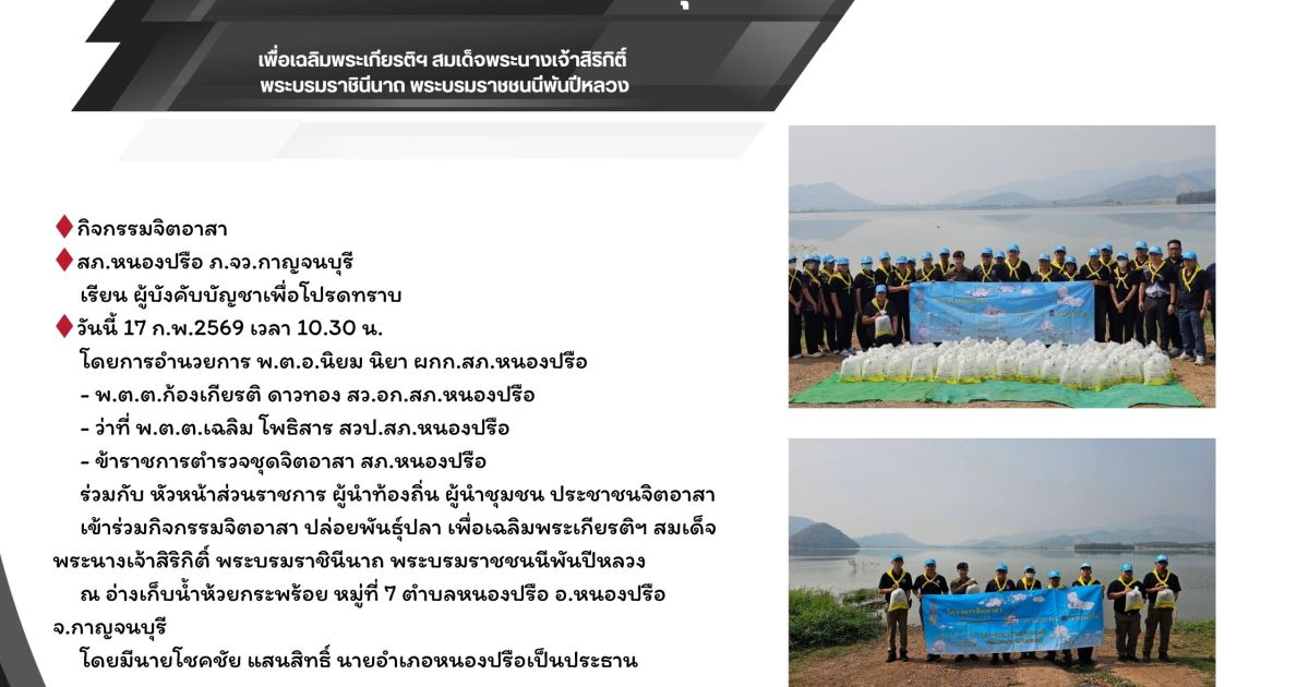 ร่วมกิจกรรมจิตอาสา ปล่อยพันธุ์ปลา เพื่อเฉลิมพระเกียรติฯ สมเด็จพระนางเจ้าสิริกิติ์ พระบรมราชินีนาถ พระบรมราชชนนีพันปีหลวง