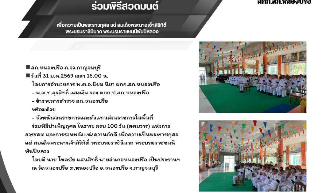 ร่วมพิธีบำเพ็ญกุศล ในวาระ ครบ 100 วัน (สตมวาร) แห่งการสวรรคต และการรวมพลังแห่งความภักดี เพื่อถวายเป็นพระราชกุศล แด่ สมเด็จพระนางเจ้าสิริกิติ์ พระบรมราชินีนาถ พระบรมราชชนนีพันปีหลวง