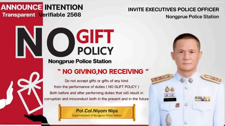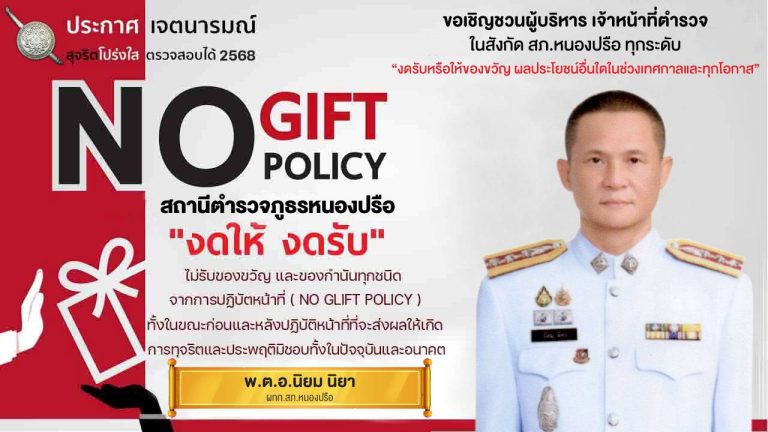 - ประกาศสำนักงานยุทธศาสตร์ตำรวจเรื่องเจตนารมณ์ที่จะไม่รับของขวัญหรือของกำนัลทุกชนิดจากการปฏิบัติหน้าที่