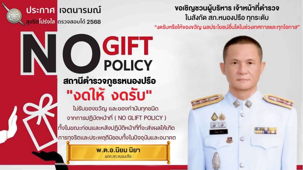นโยบายไม่รับของขวัญและของกำนัลทุกชนิด (No Gift Policy) จากการปฏิบัติหน้าที่